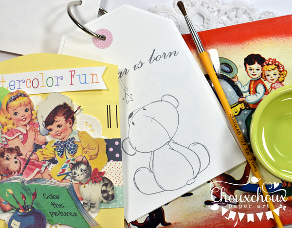 First up, let me tell you about the tag book. I wanted images that were a little larger than most of my stamps, so I printed digi images on watercolor paper.