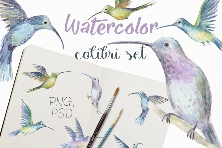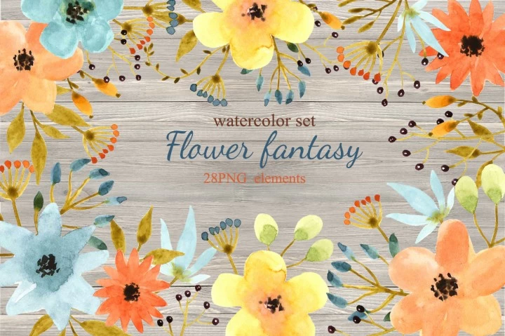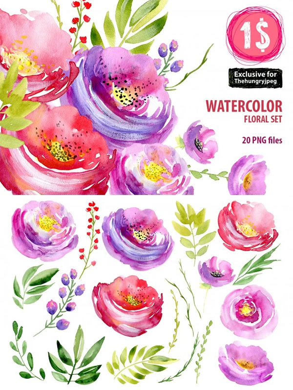 • Watercolor floral set with pink, purple, and red flowers! $1