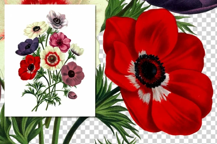 • Vintage Flowers: 3671 A272 Anemones Bouquet $1