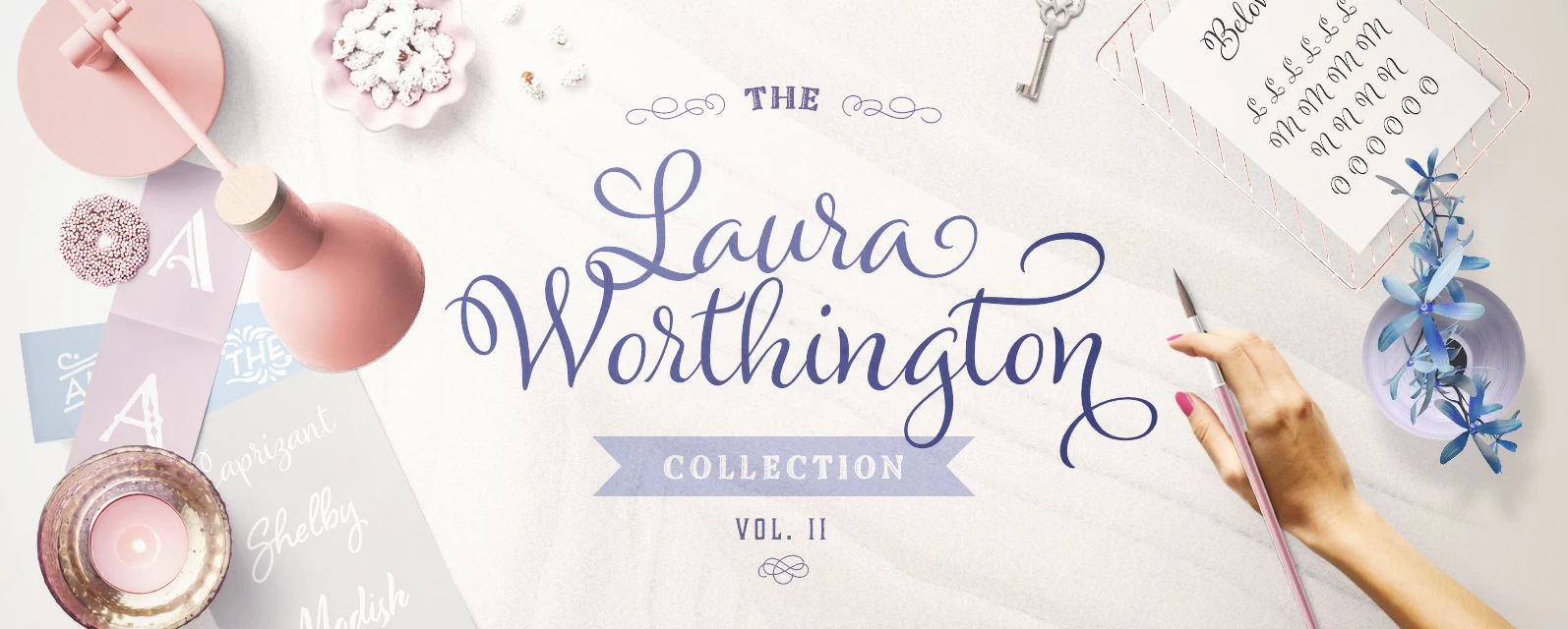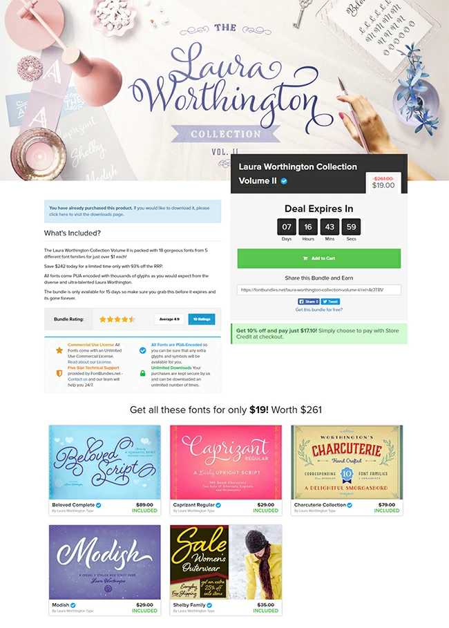 The Laura Worthington Collection Volume II is packed with 18 gorgeous fonts from 5 different font families for just over $1 each! $19 instead of $261