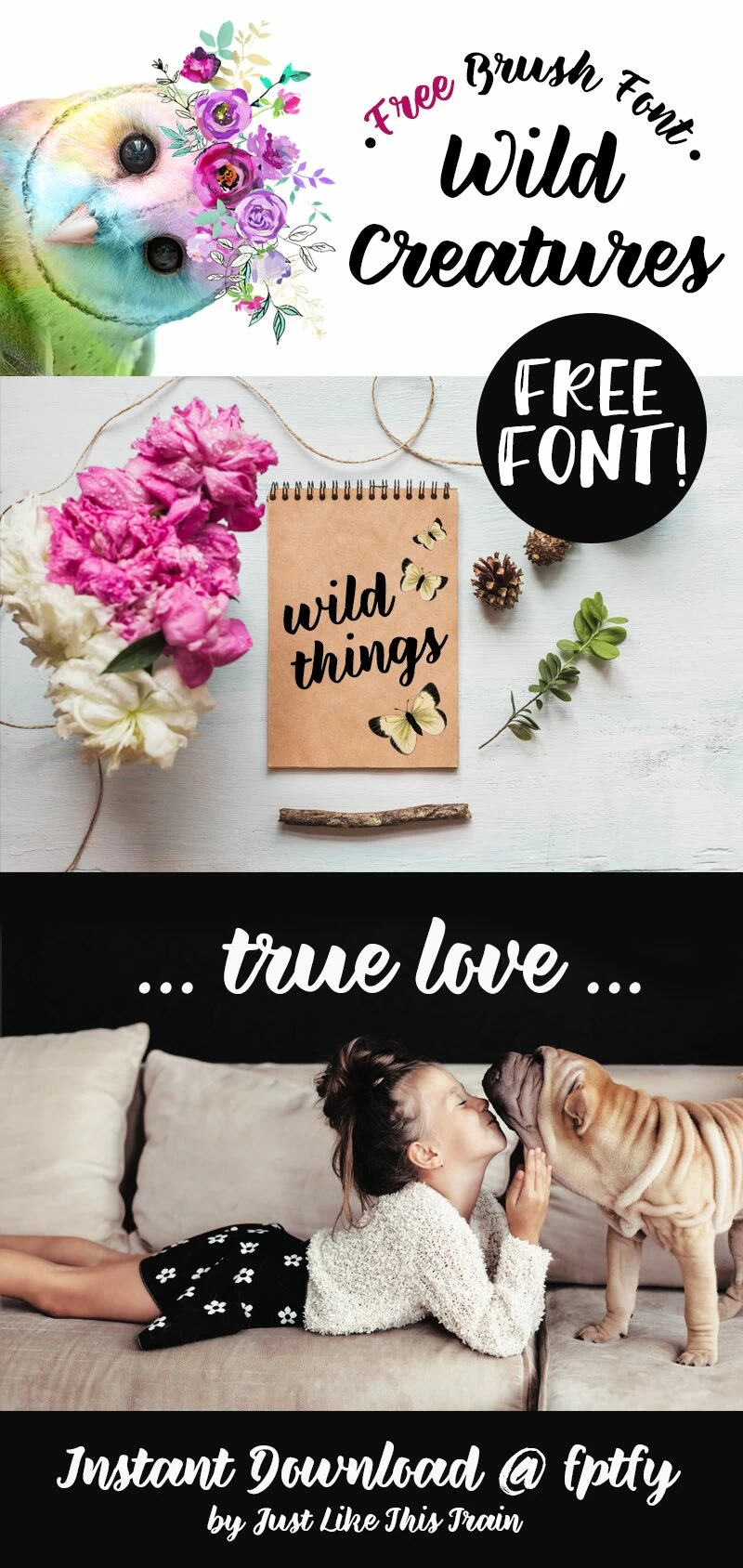 A gorgeous brush font available for instant download called Wild Creatures