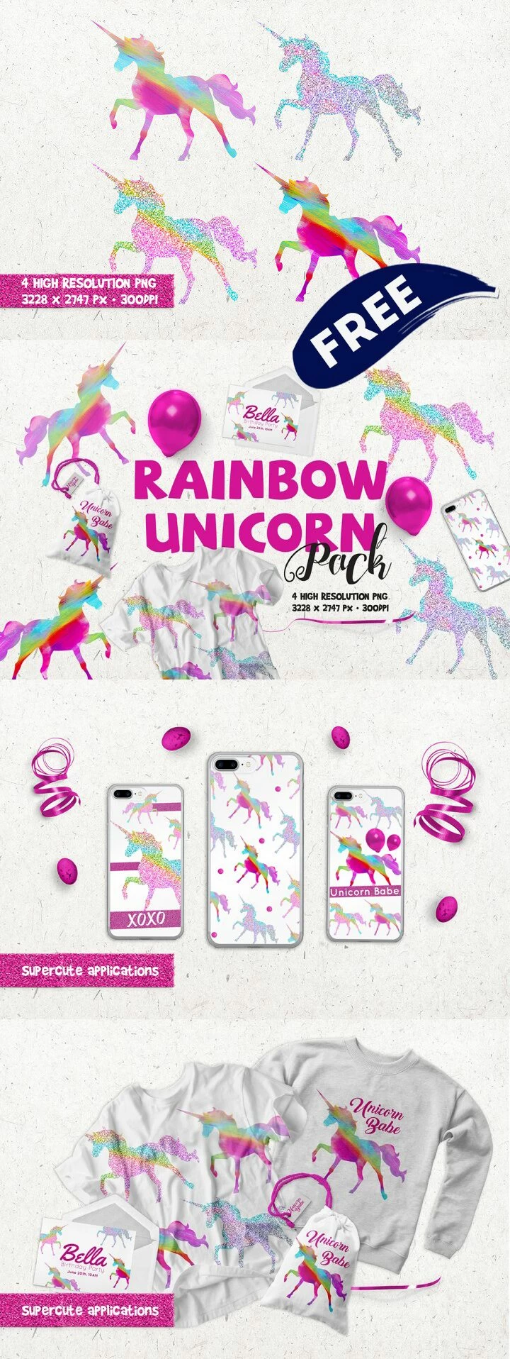 Free Rainbow Unicorn and Seahorse Graphic Packs