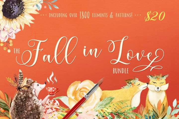 Today’s gorgeous Free Farmhouse Inspired Digital Floral paper Backgrounds are sponsored by the beautiful Fall in Love Bundle! This stunning bundle is bursting with all things fall that includes 26 graphics packs for only $20!