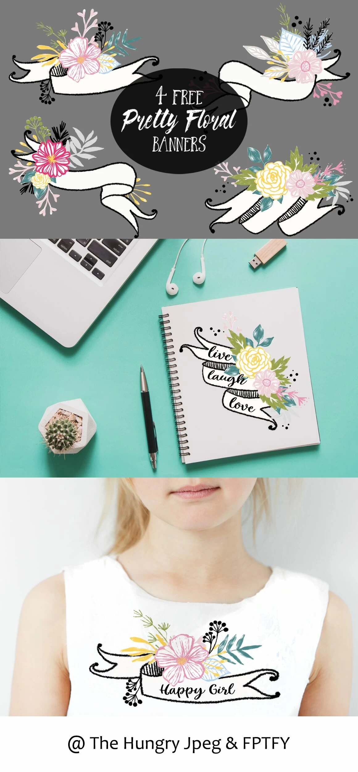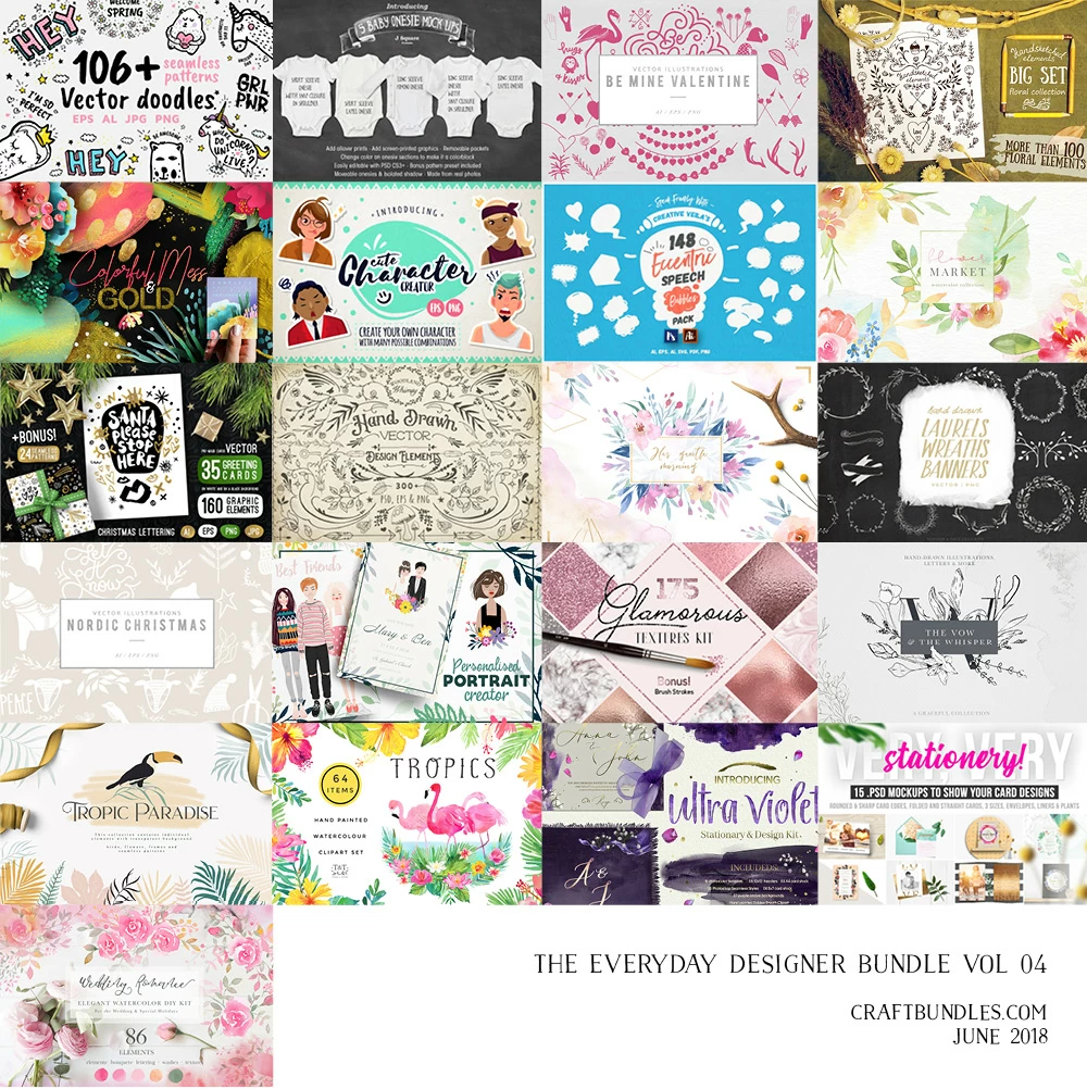 The Everyday Designer Pack No.4 is now live and as prettier as ever! As a thank you for all your support, The Hungry Jpeg Team is also sponsoring these 4 Pretty Floral Banners, yours for the taking absolutely FREE!