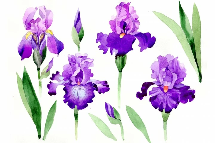 • Purple irises PNG watercolor set $1