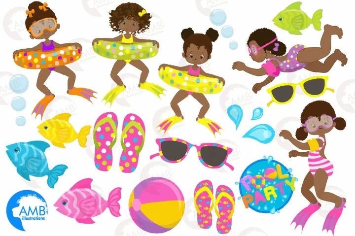 • Pool Party for girls clipart $1 – So Cute!