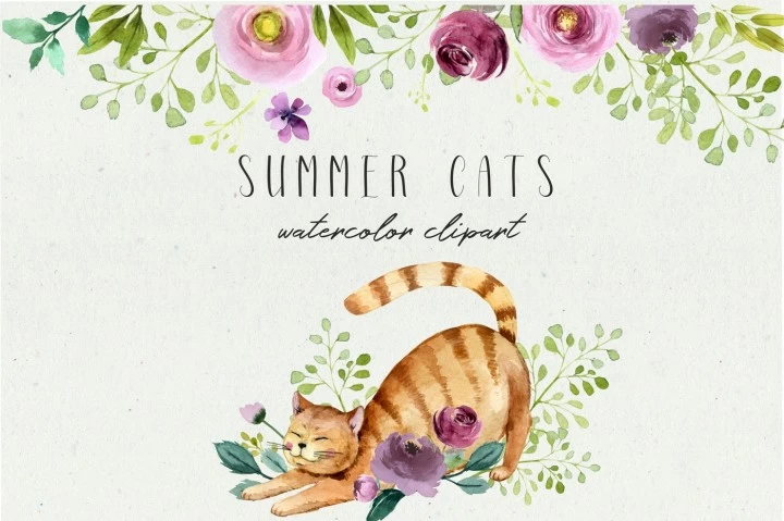• Summer cats watercolor clipart $1