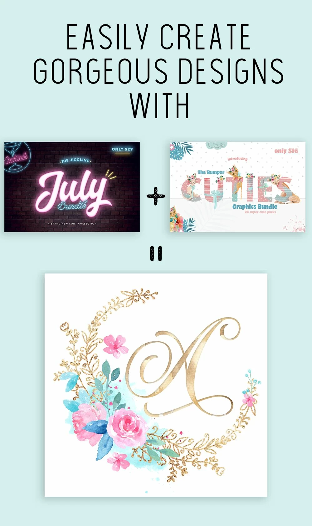 I used both The Jiggling July Bundle and The Bumper Cuties Bundle to create this beautiful Free A-Z wall art collection!