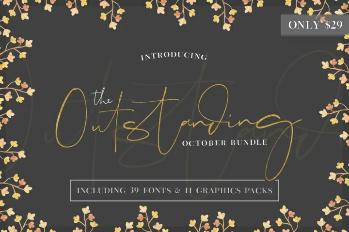 That includes over 39 Fonts and 11 Graphics packs for just $29!! This amazing pack is over 96% OFF RRP, but hurry this outstanding collection is only on sale for just one month. As always this amazing pack comes with our complete commercial license. What are you waiting for? Grab your copy HERE! For an extra %15 off use Code: OCTO15