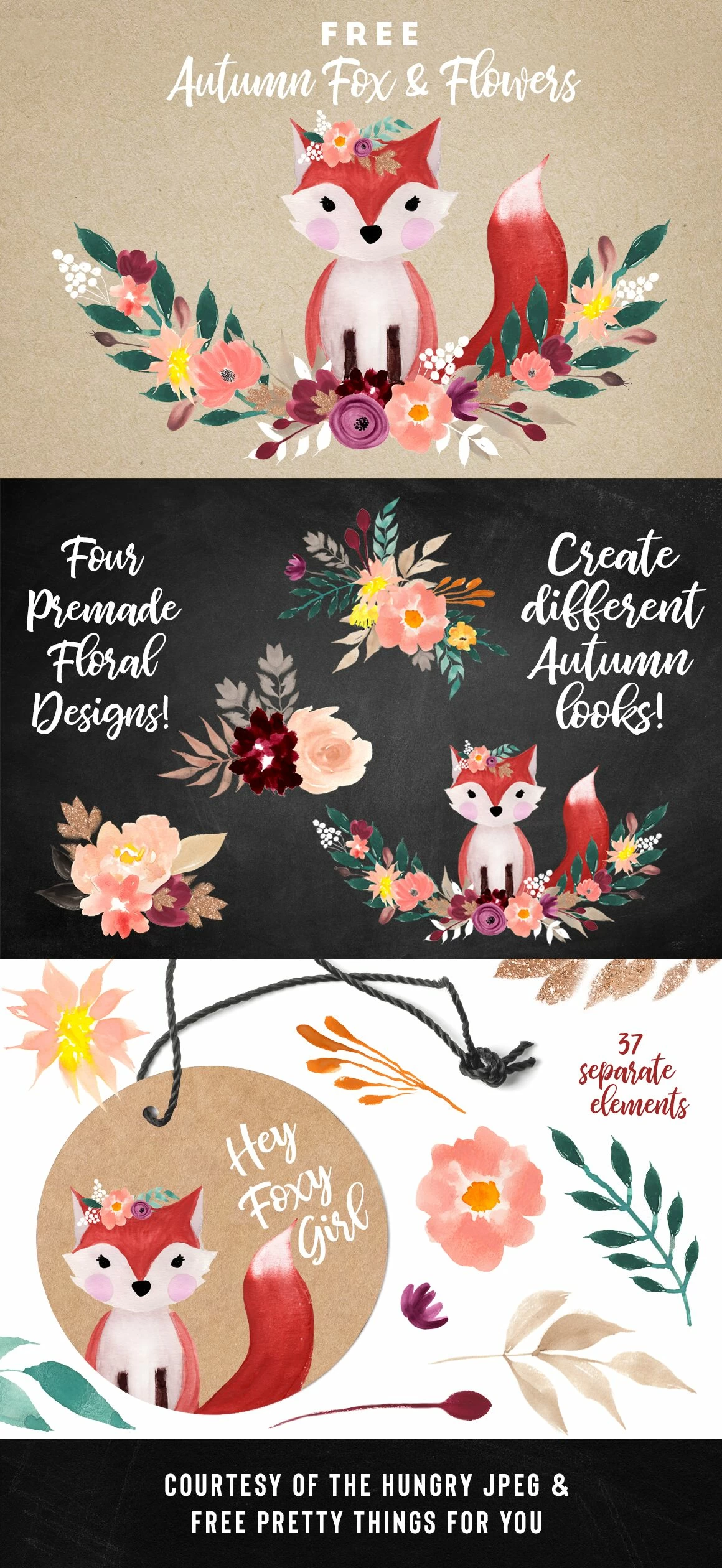 Fall is in full bloom here in beautiful WNC and to celebrate The Hungry Jpeg and I have for you the cutest Fox and Flowers Autumn digital graphics collection – Absolutely FREE!