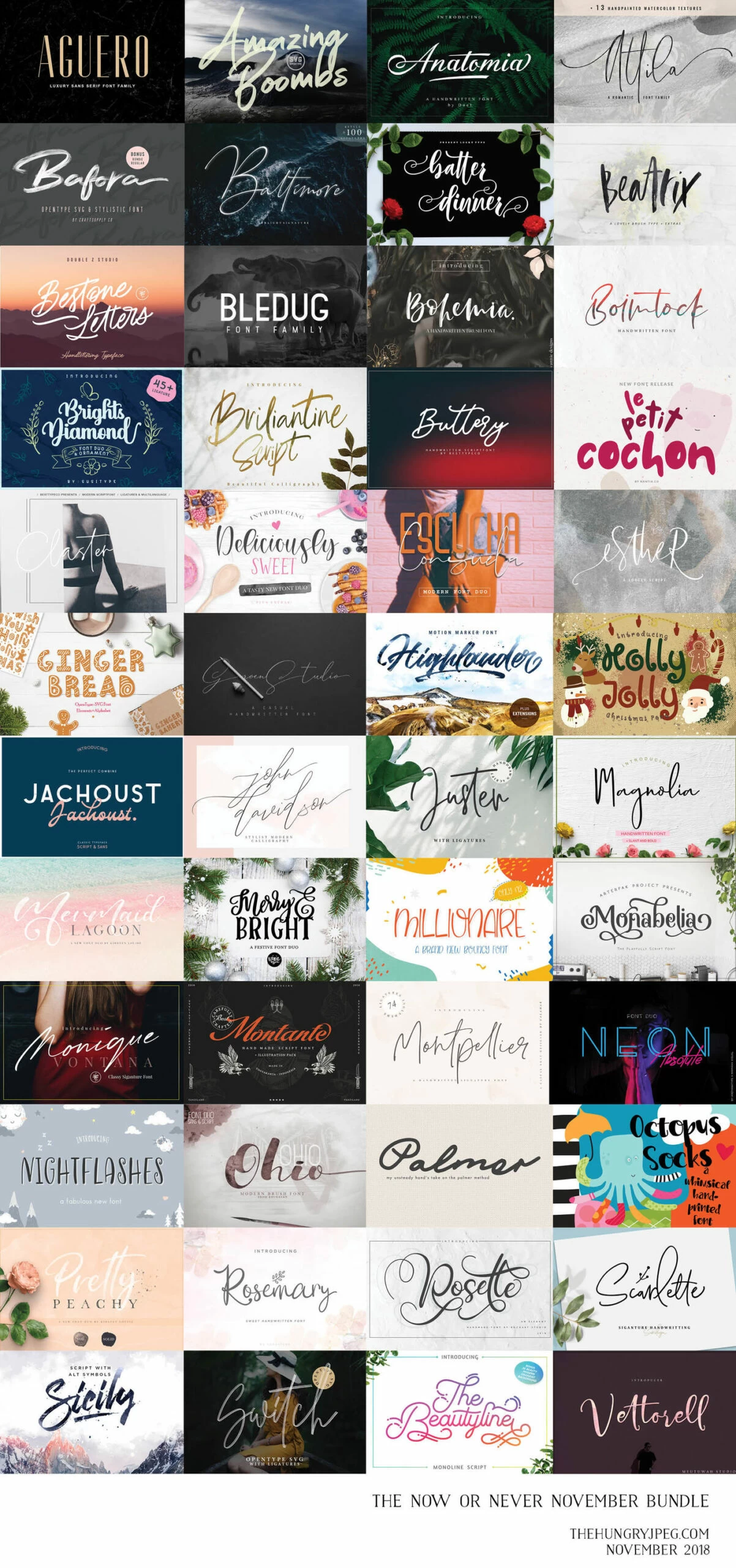 In their own words.. “The Now Or Never November Bundle is finally here! This all-font bundle comes with 48 fonts that you will absolutely adore. Ranging from script fonts to bold typefaces and even quirky fonts, they’re all here for your design needs.You can get this whole bundle for ONLY $29! That’s over 95% off regular retail price. Hurry, it’s Now or Never!“