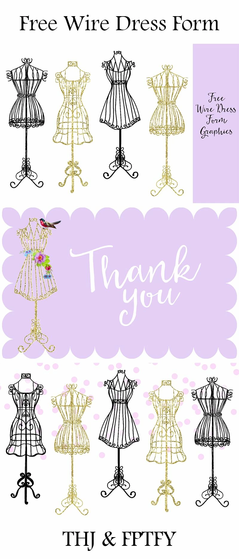 I Have a special treat to share with you -A set of Free Romantic Wire Dress Forms Graphics that come in black and shimmering Gold!
