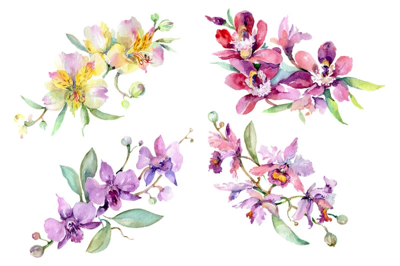 • Bouquet with orchids Angel gift Watercolor $1