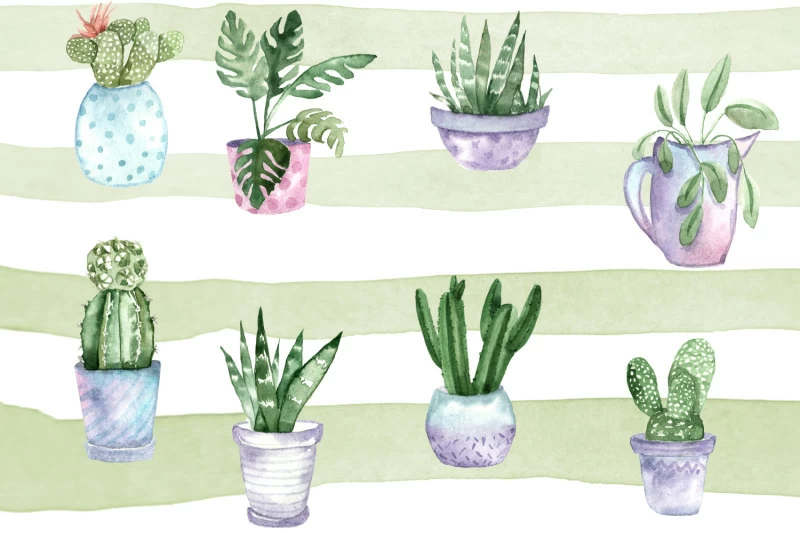 • Potted cactus, succulent Watercolor $1