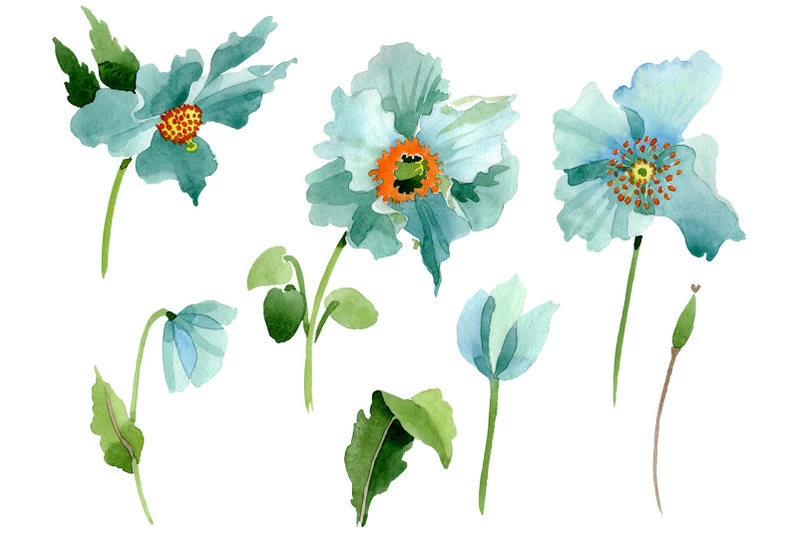 • Turquoise poppy Watercolor $1