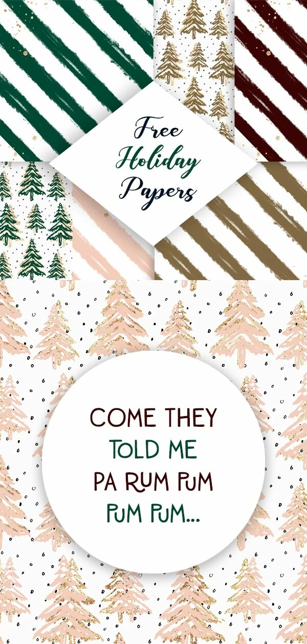 Ready to download your free Winter Backgrounds? This pack comes with four Pine Tree papers and 5 matching striped papers.