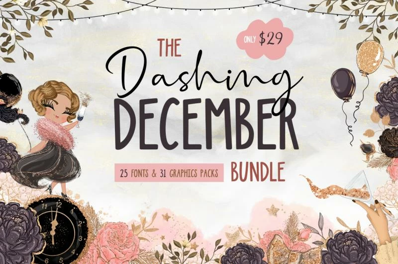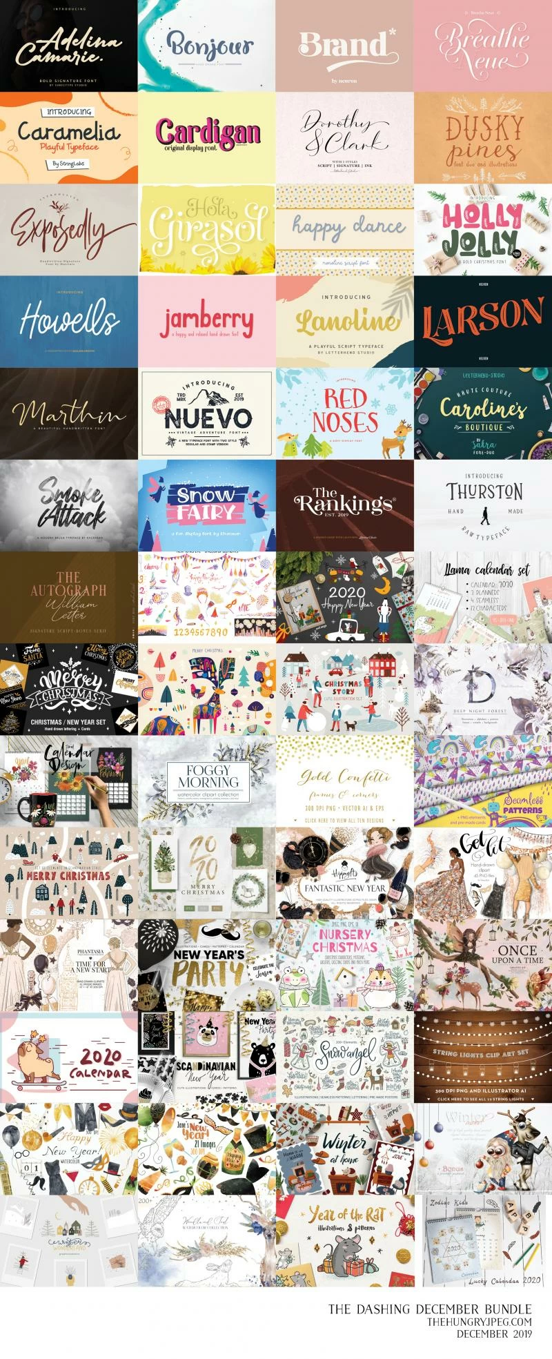 It’s the last month of year 2019 and we have an exciting bundle up our sleeves! We present to you The Dashing December Bundle! Comes complete with 56 packs of premium fonts and graphics – an all celebrative bundle to add into your collection!