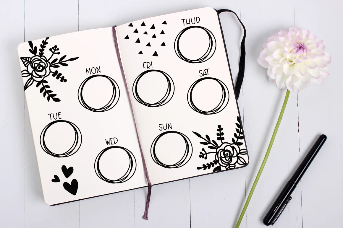 One of my favorite ways of using crafty dingbat fonts is in creating bullet journaling layouts like the example below: