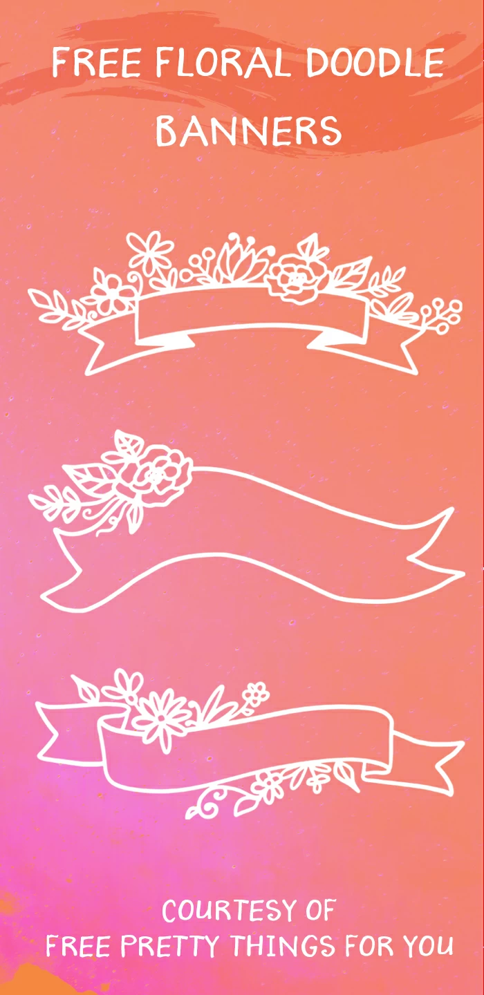 Today you can download a set of Three New Floral Banner Doodles for pretty web or printing DIY projects. Use for personal and commercial use at no charge!