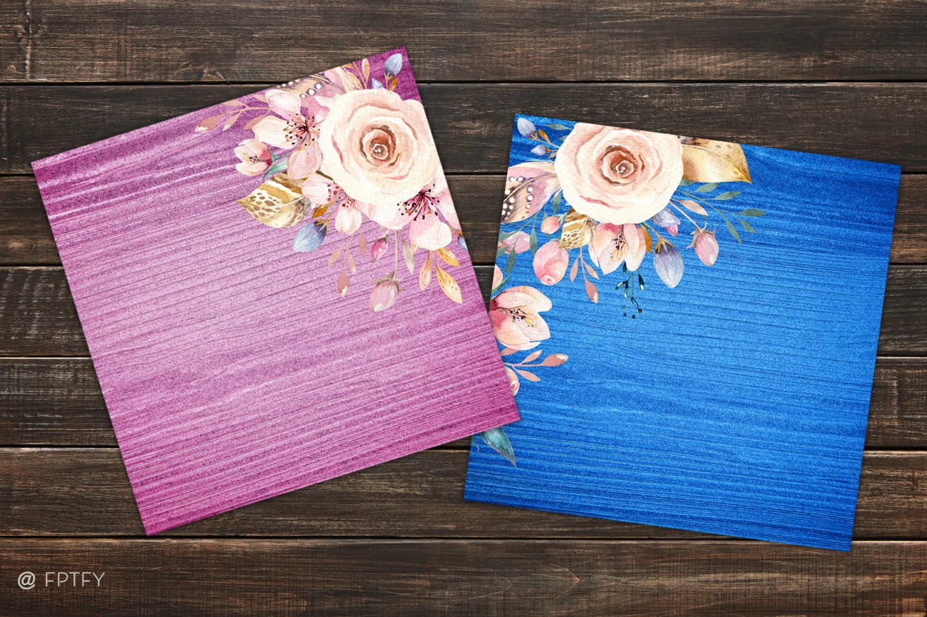When I think of bohemian, I think of gorgeous jewel-tone colors with lots of flowers and feathers! I created these beauties with all of that in mind 😍 They all have a woodgrain textured backdrop in four gorgeous colors: Emerald green, royal purple, dusty rose, and royal blue.