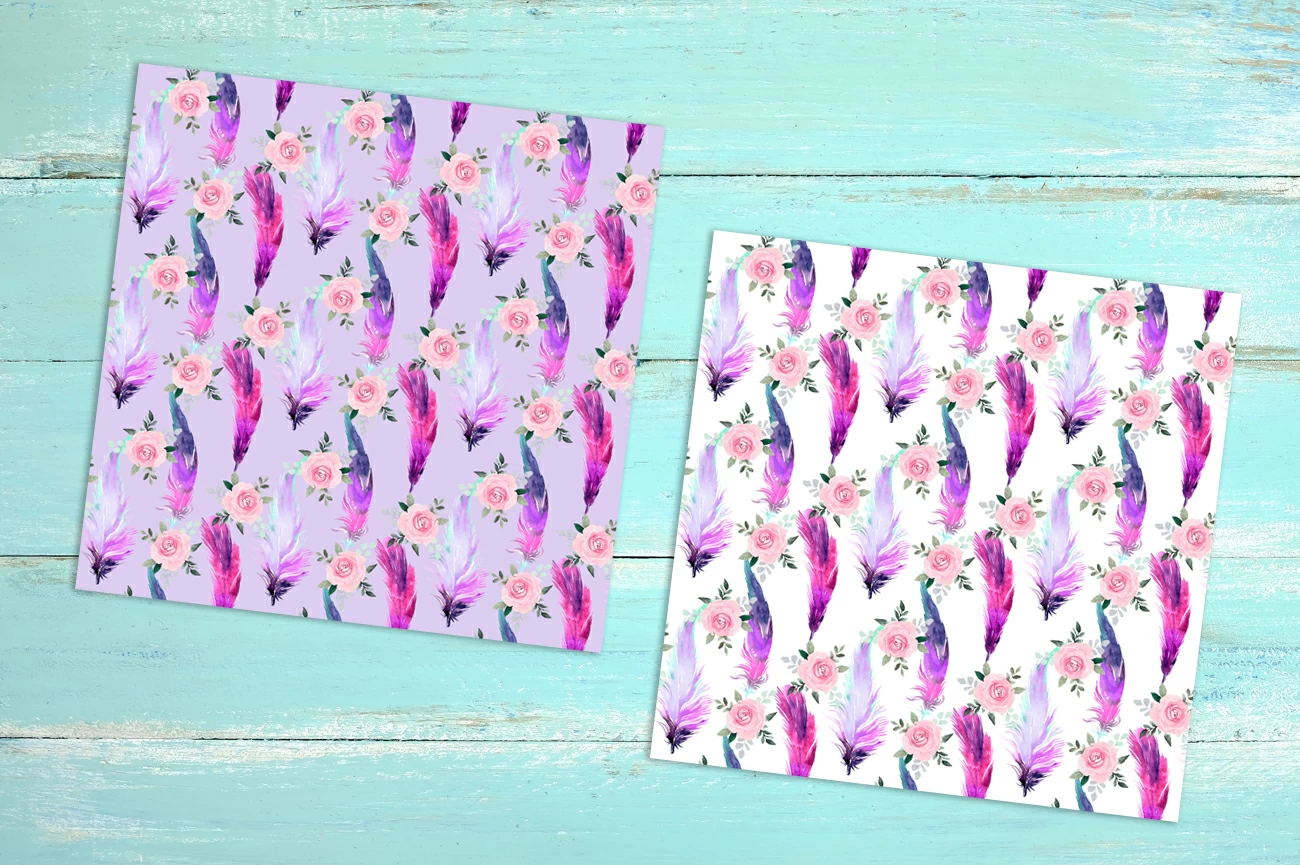 7 Free Feather and Roses DigiPapers