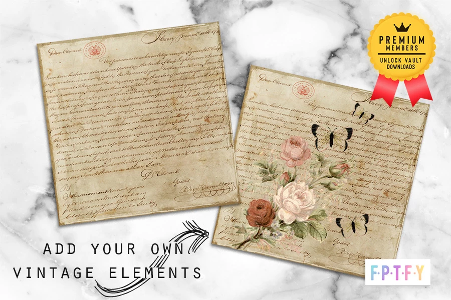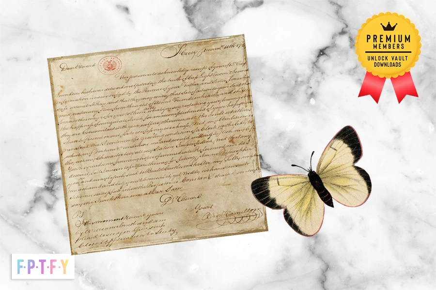 This beautiful set of 1764 Antique Document Digital Paper is available for all FPTFY Premium Vault members! Designed with a vintage 1964 document written by Alexander Hamilton.