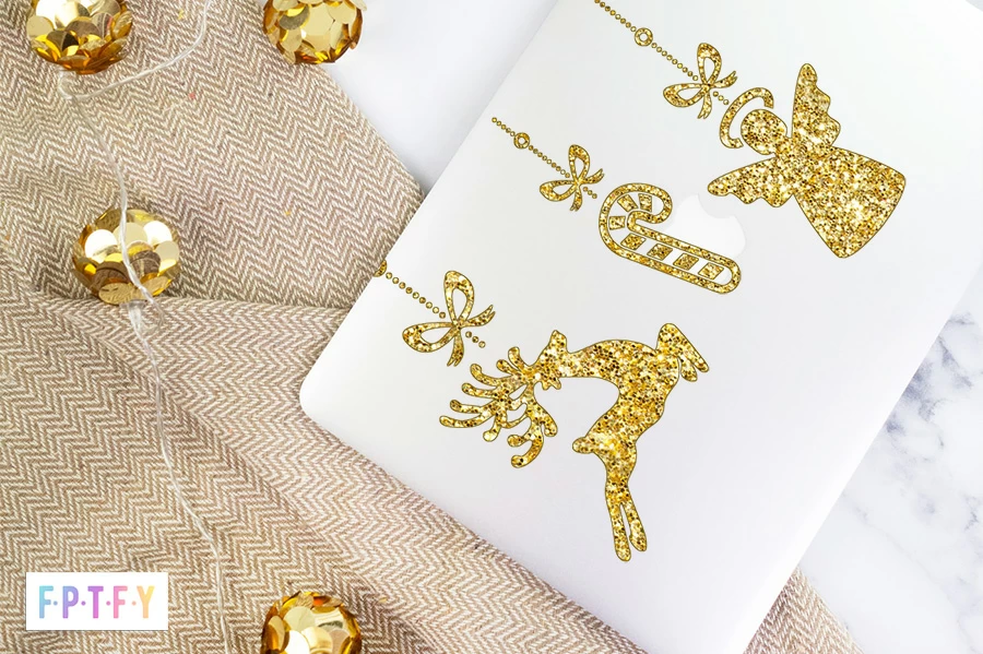 Enjoy these 10 Free Christmas Gold Glitter Ornaments Graphics and start designing lovely: