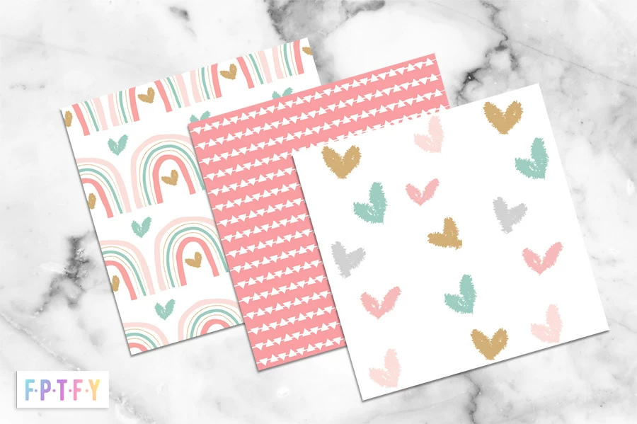 Such a happy new pretty Free Over the Rainbow Love Digital Scrapbooking Paper Collection! Designed with a super cute color palette, this lovely set of digital papers could be used for Valentine’s day projects, baby showers, crafty bible journaling, scrapbooking layouts, and more!