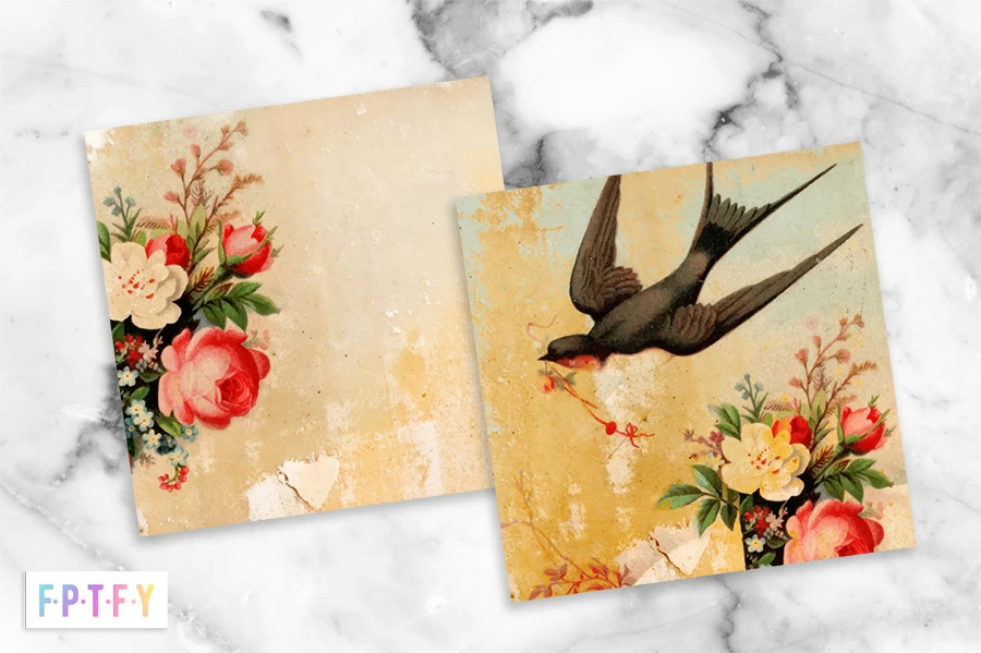The Digital Paper Backgrounds are designed with gorgeous rustic textured backgrounds, lovely vintage sparrows, and beautiful vintage roses.