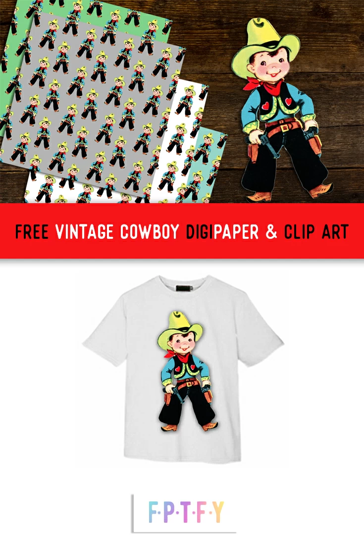 Isn’t this Freebie Image Vintage Cowboy just too cute for words! I scanned, cleaned, and restored him from an old vintage valentine card 😍 Then I created some fun seamless digital papers you could use to design a mixture of projects with, like: