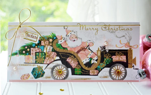 3 Free Pink Vintage Santa Images are yours for download today! This Variety pack contains an adorable pink Santa ridding an old fashion car filled with pretty presents and a fully decorated Christmas tree!